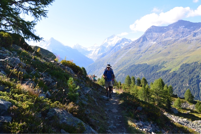 The Hotel Schwarzhorn is a quaint alpine hotel, worthy of a visit. It is appropriately located for the walkers last night on the trail (although some do plan one more night between here and Zermatt). Every room was booked for walkers flooding into the home stretch. When we arrived there was a pyramid of red duffle bags with a trekking company's logo stamped on their side. A large group soon followed.